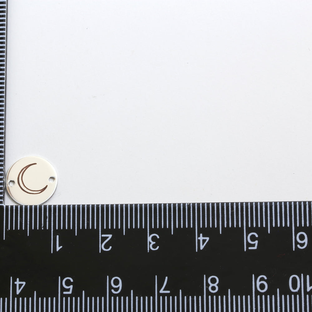 Sterling Silver Engraved Crescent Moon Connector Charm 11mm Disc Coin Circle