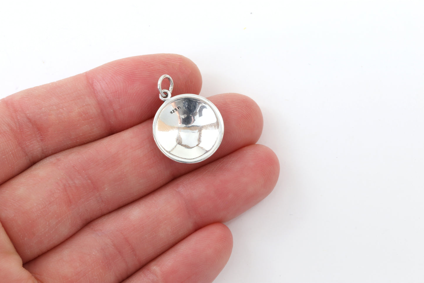 Sterling Silver Full Moon Crater Cast Charm 15mm x 17mm with Closed Jump Ring