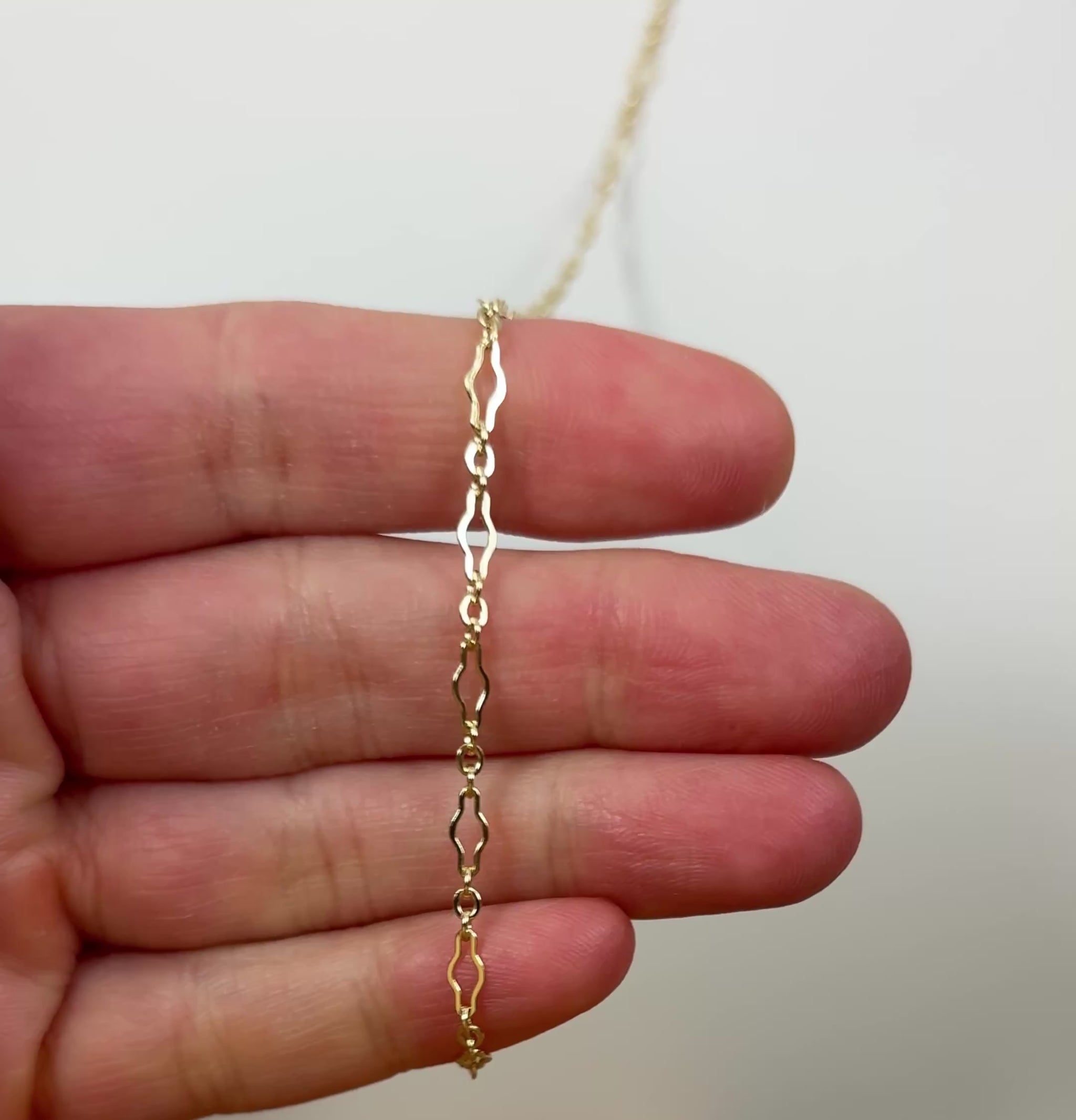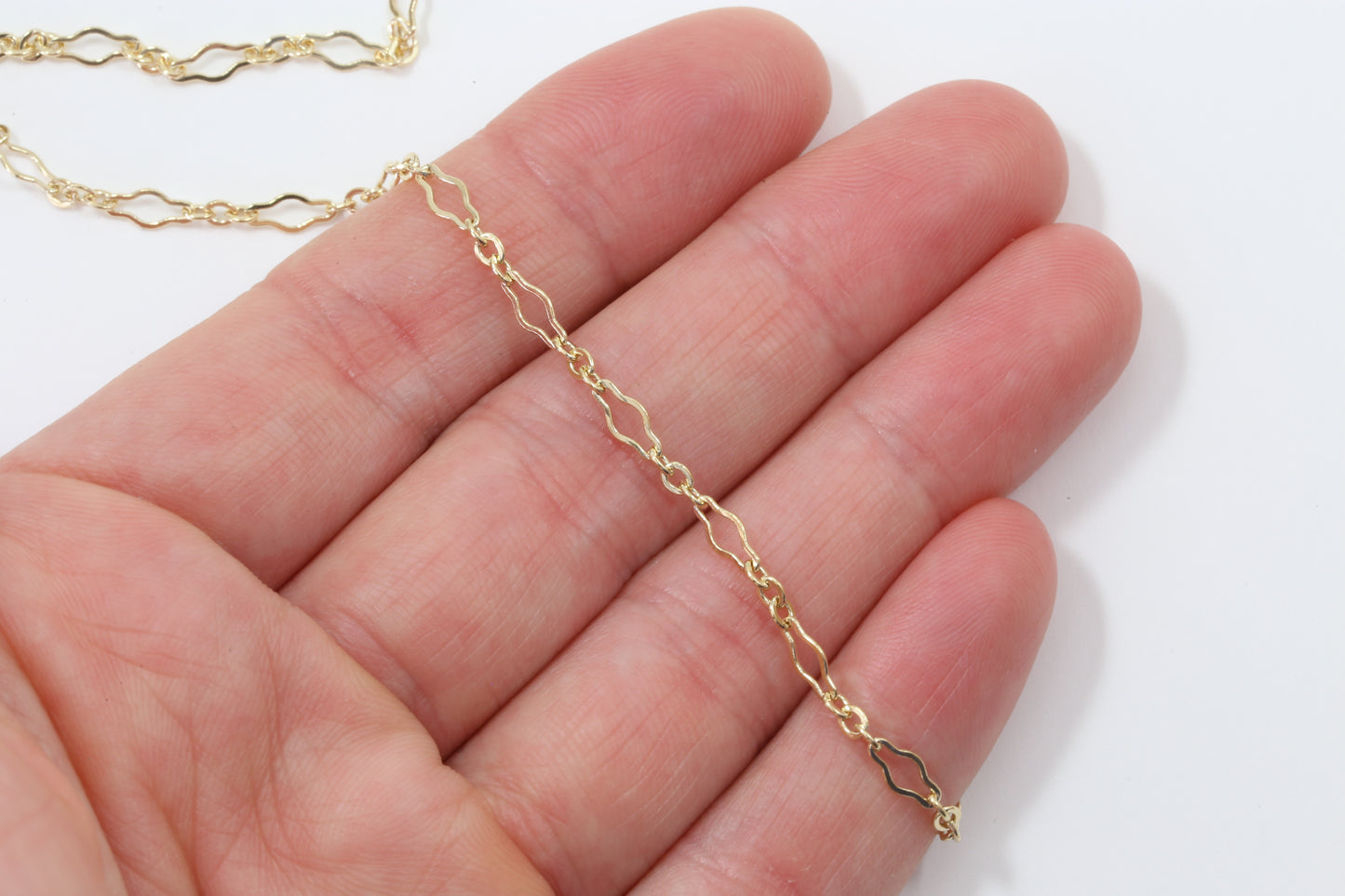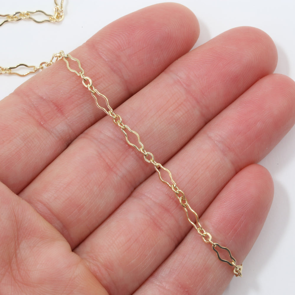 Gold Filled Long and Short Krinkle Flat Chain 6.8mm x3.2mm (Per Foot)