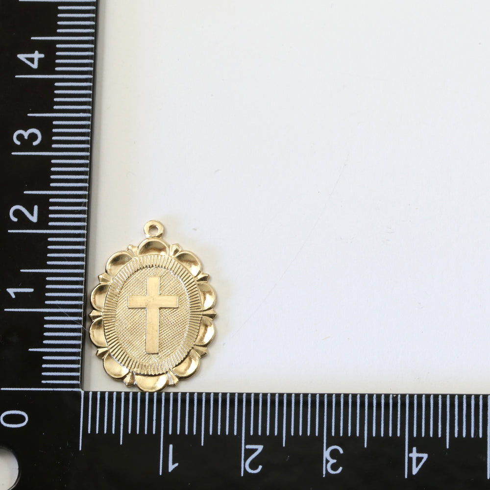 Gold Filled Scalloped Cross Oval Charm 21mm x 16mm