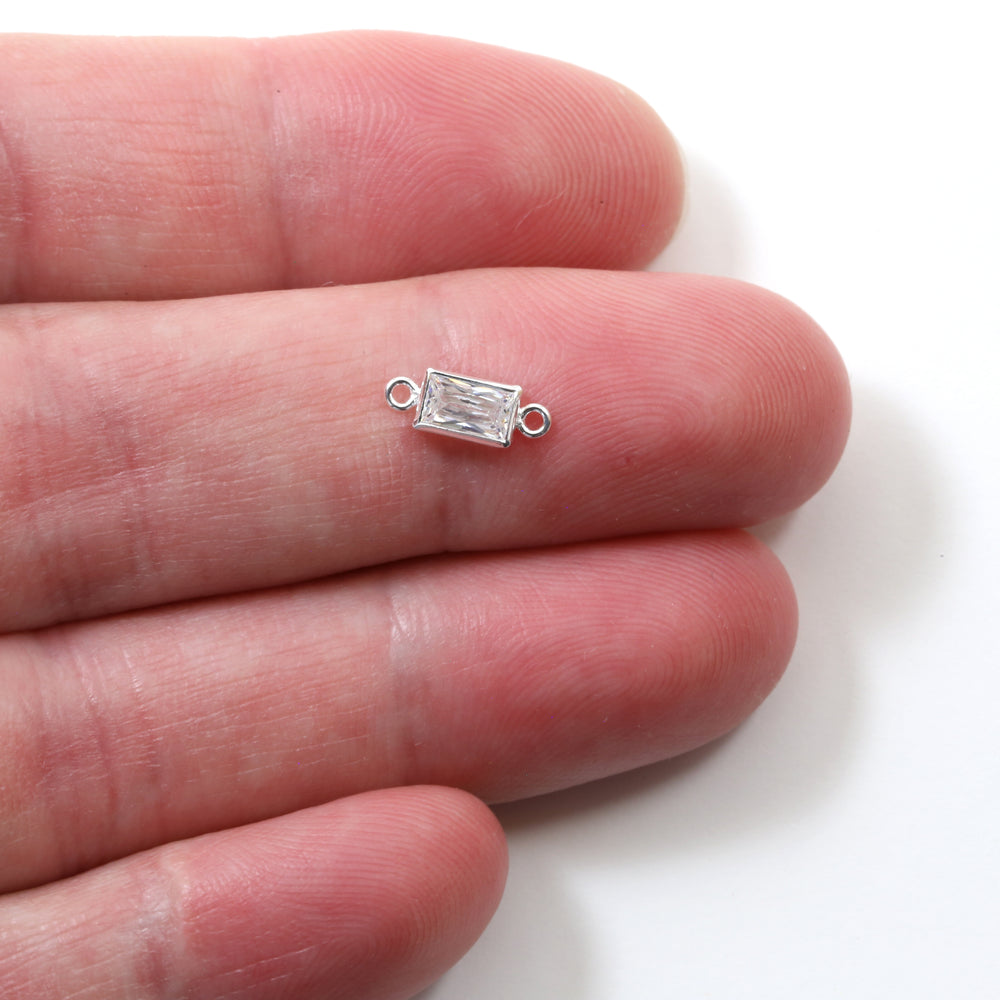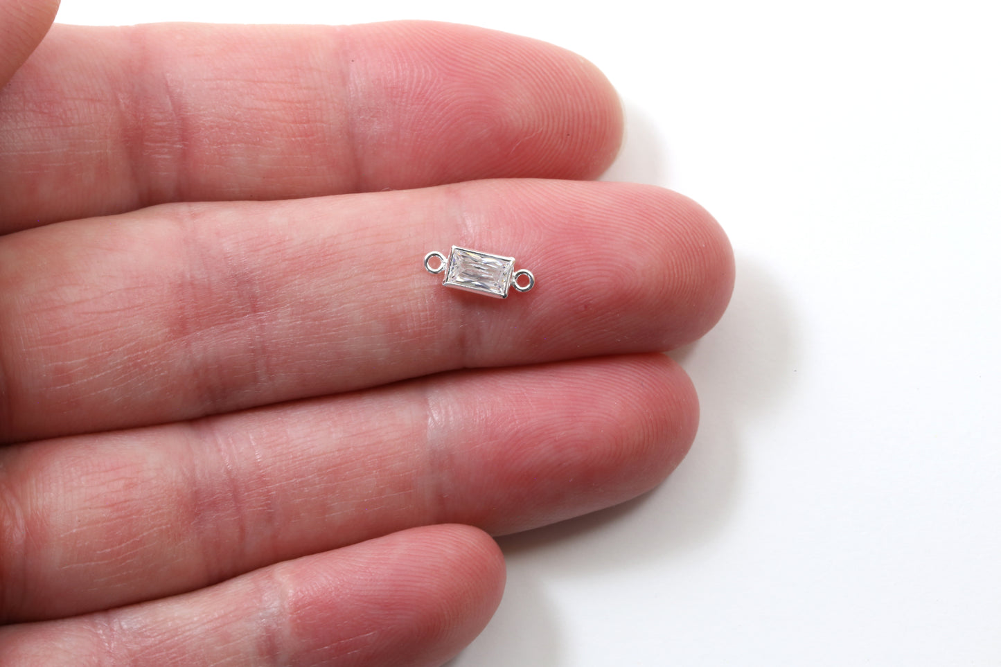 Sterling Silver Rectangle Baguette CZ Bezel Connector Charm 4mm x 6mm