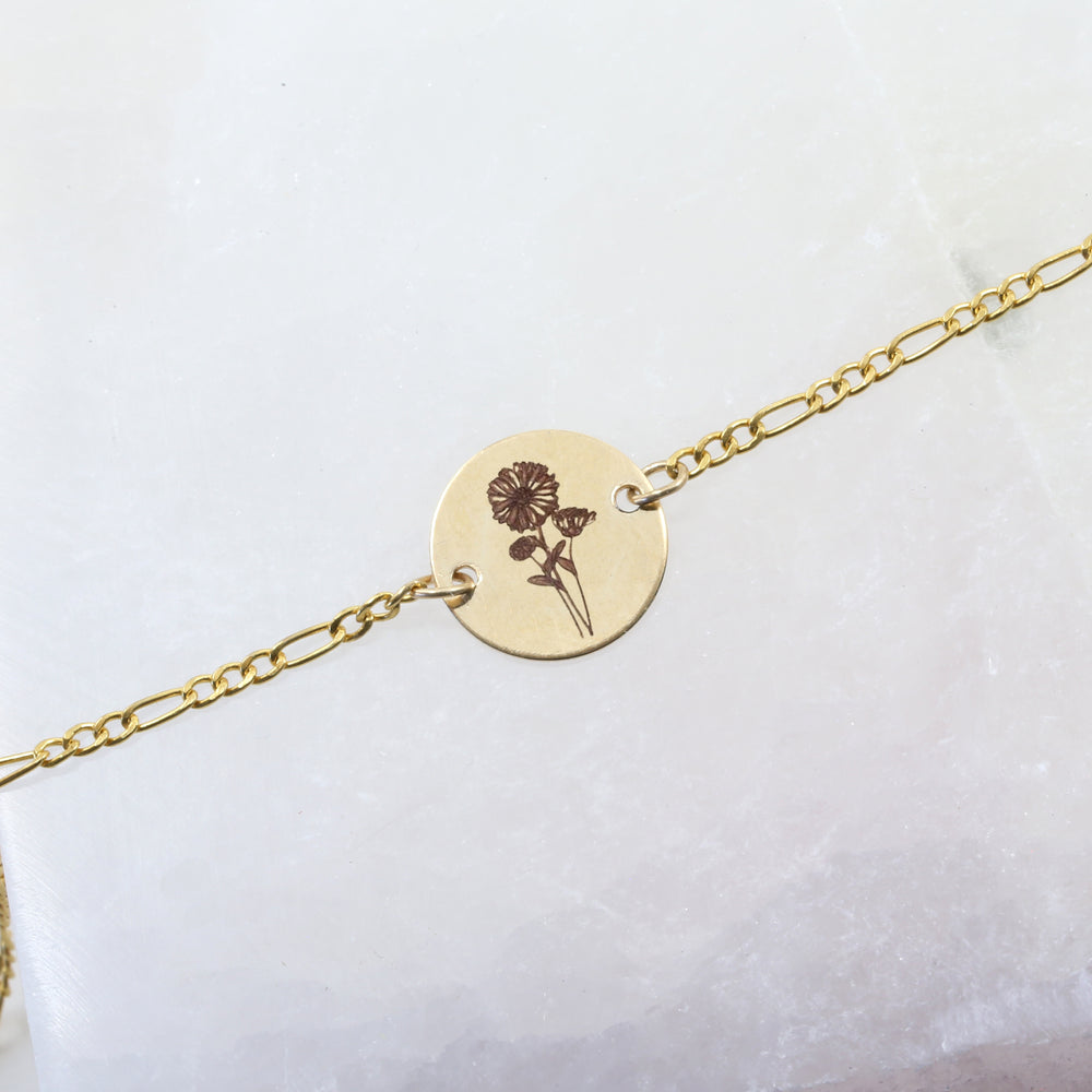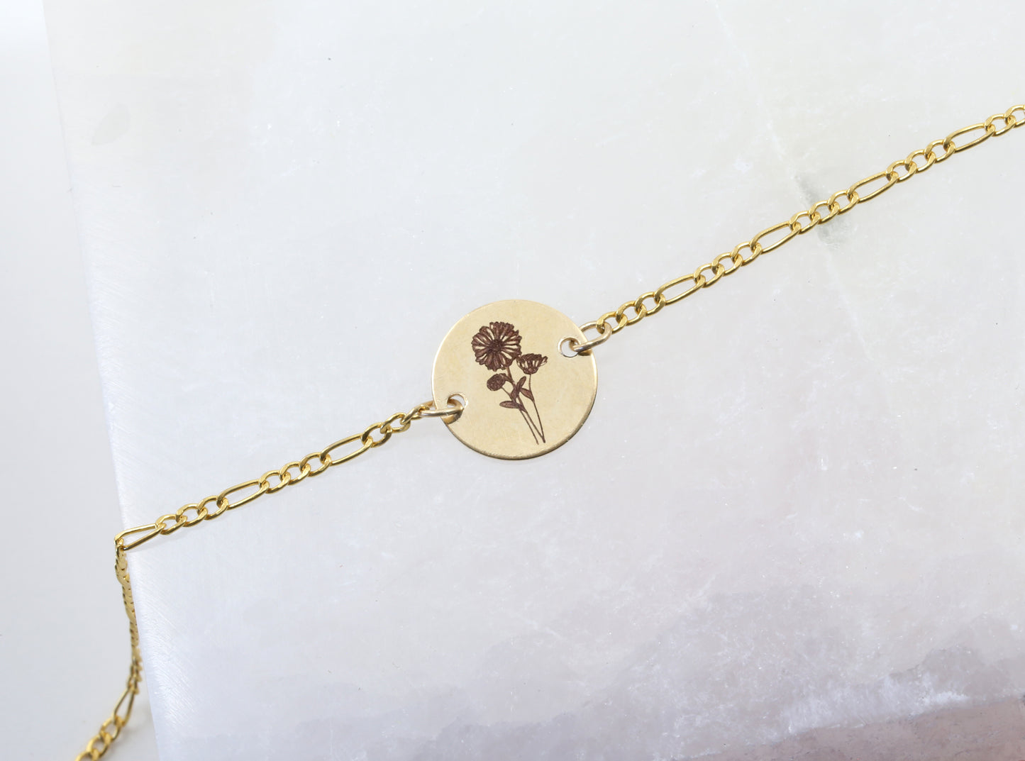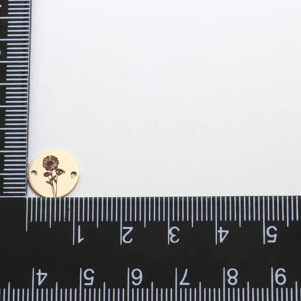 Gold Filled Engraved Aster September Birth Flower Connector Charm 11mm Disc Coin Circle