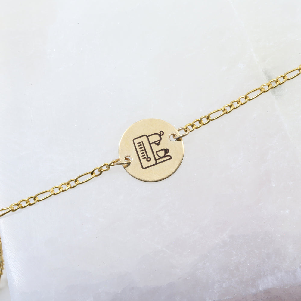 Gold Filled Engraved Coffee Espresso Machine Connector Charm 11mm Disc Coin Circle