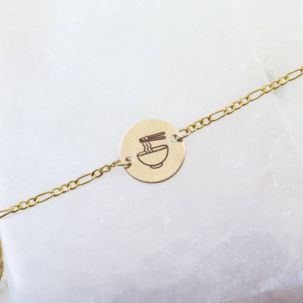 Gold Filled Engraved Ramen Noodles Connector Charm 11mm Disc Coin Circle