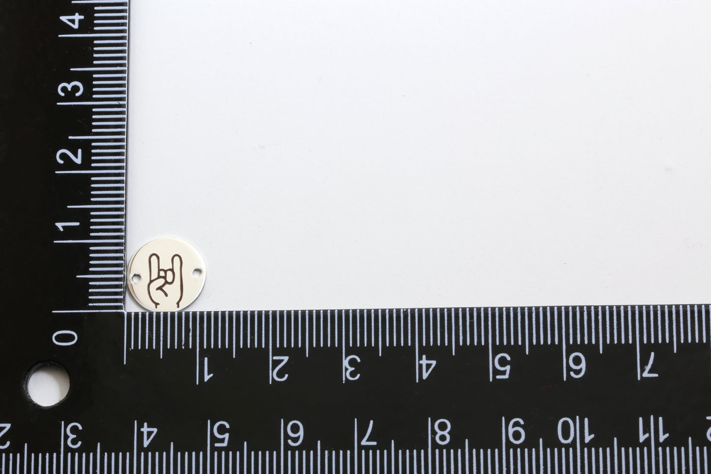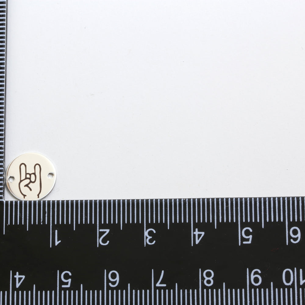 Sterling Silver Engraved Rock On Hand Gesture Connector Charm 11mm Disc Coin Circle