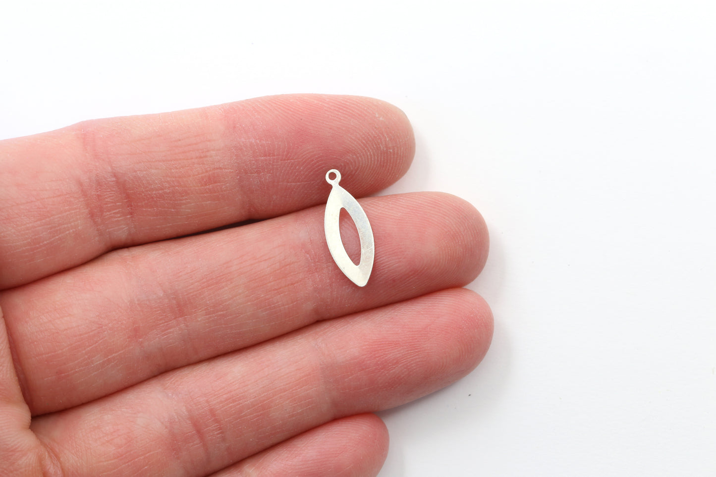 Sterling Silver Marquise Oval Shape Drop Charm 15mm x 6mm