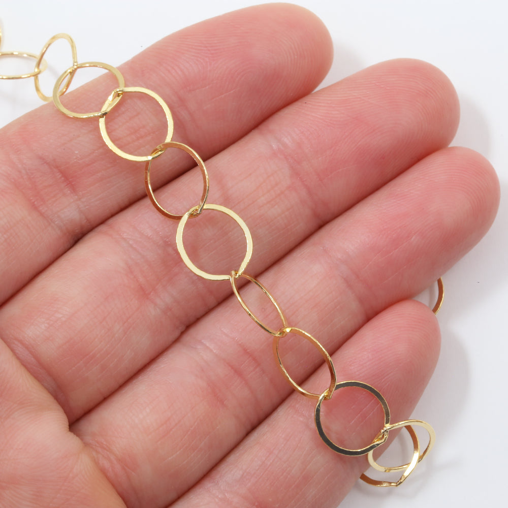 Gold Filled Flat Round Circle Cable Chain 10mm (Per Foot)