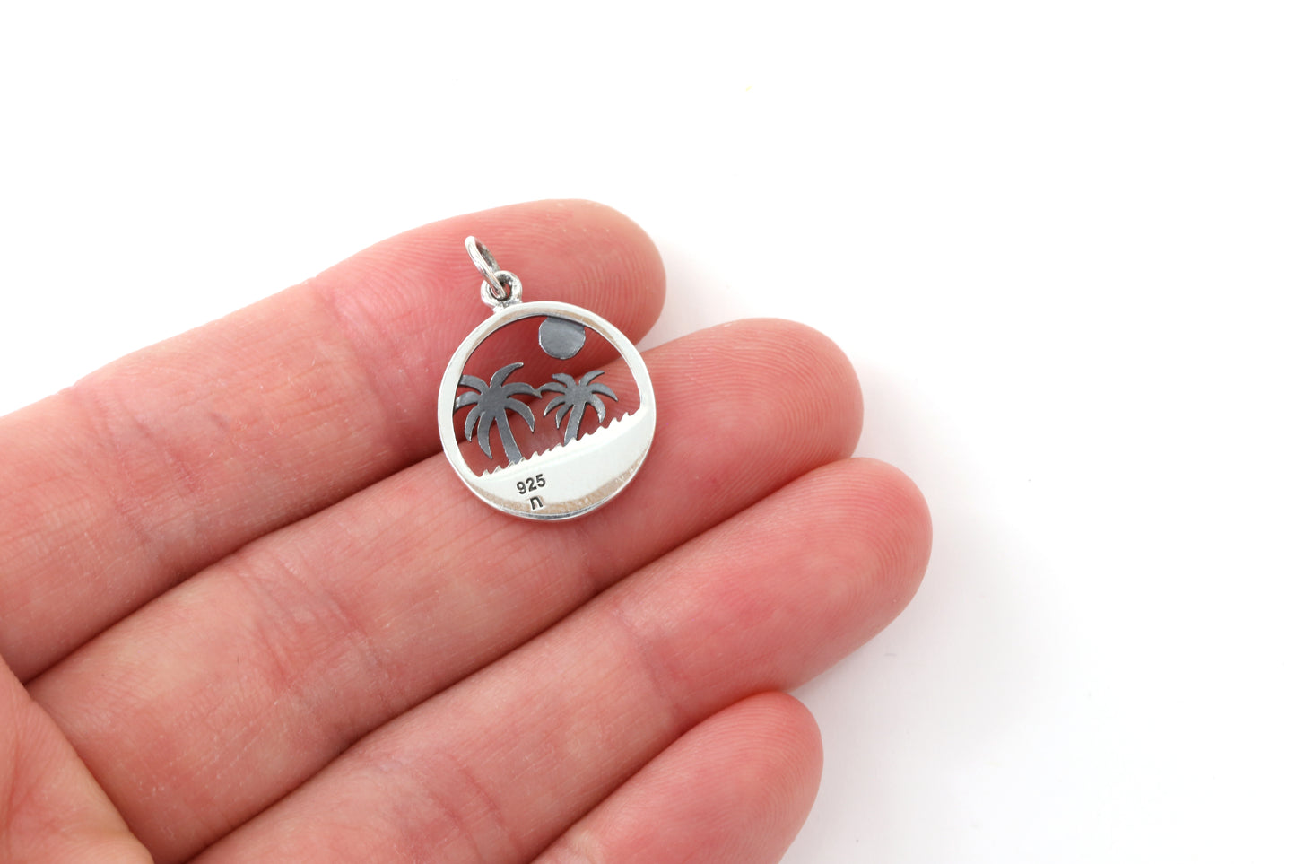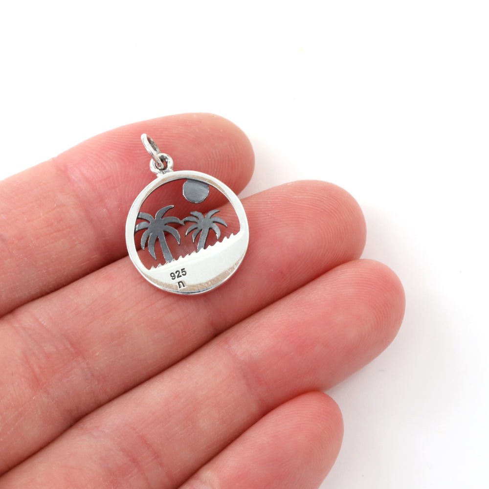 Sterling Silver Palm Tree Tropical Charm 16mm x 18mm with Closed Jump Ring