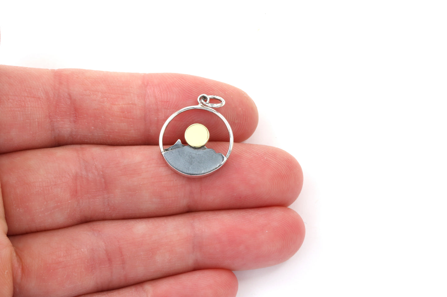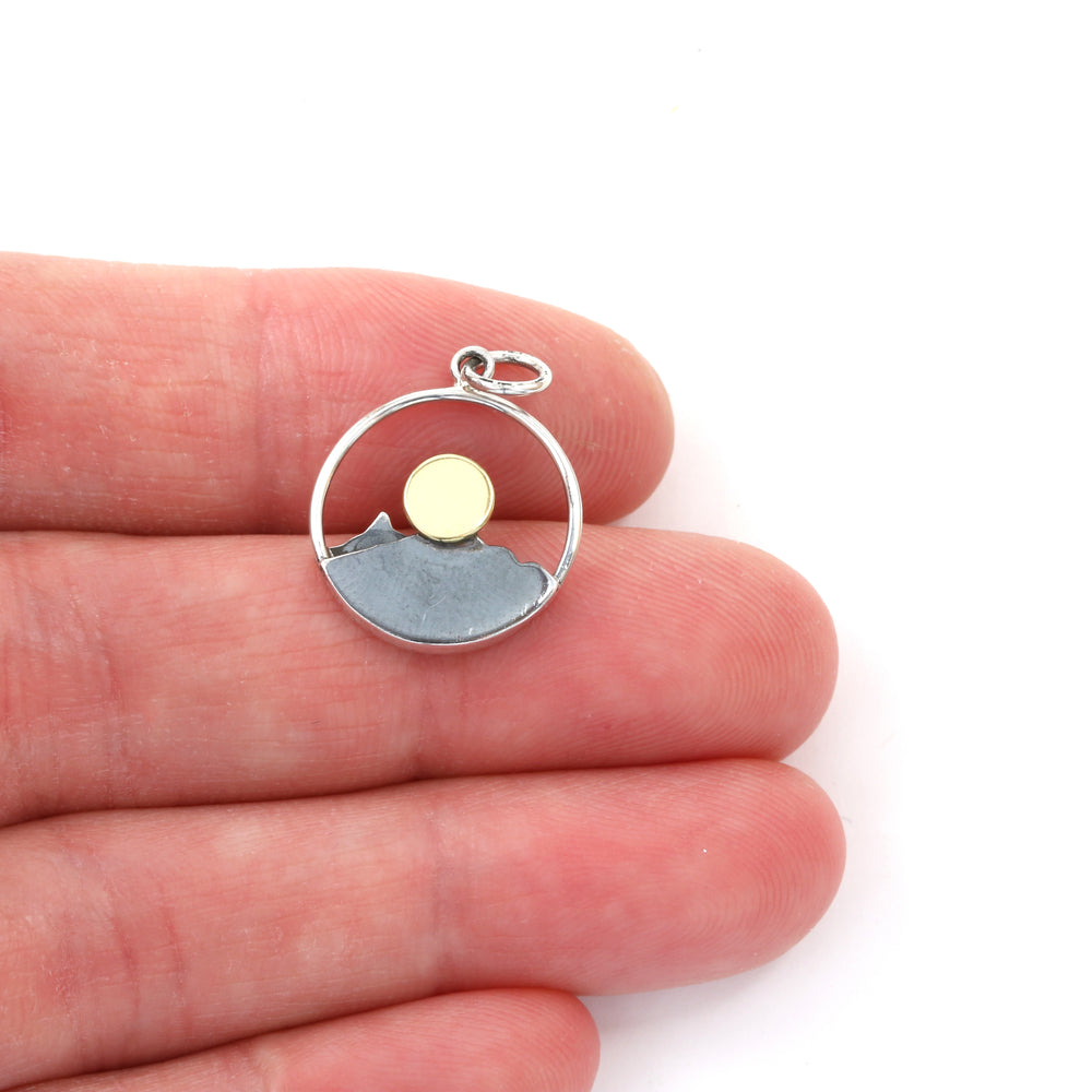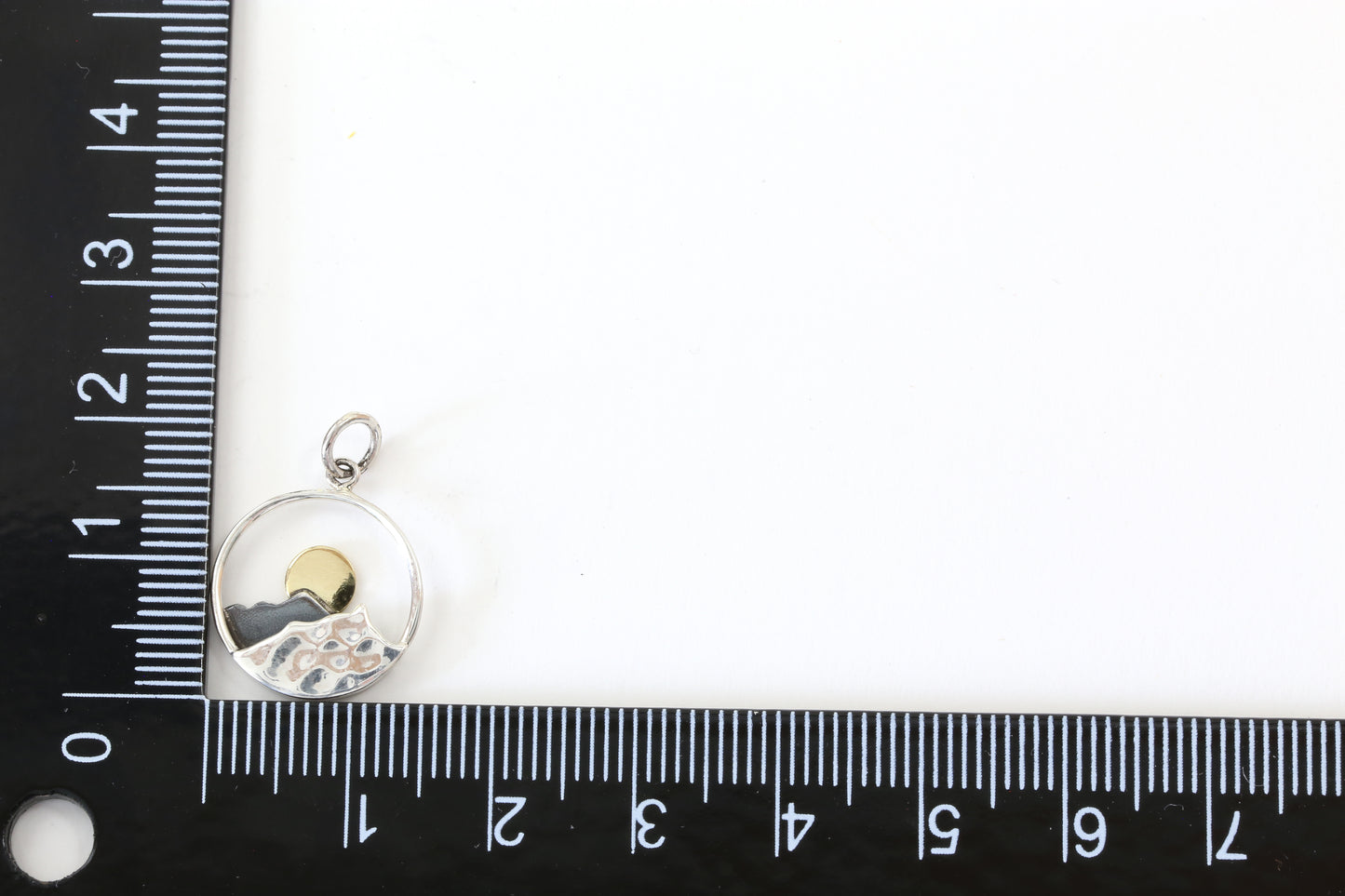Sterling Silver Sunset Mountain Nature Charm 15mm x 18mm with Closed Jump Ring