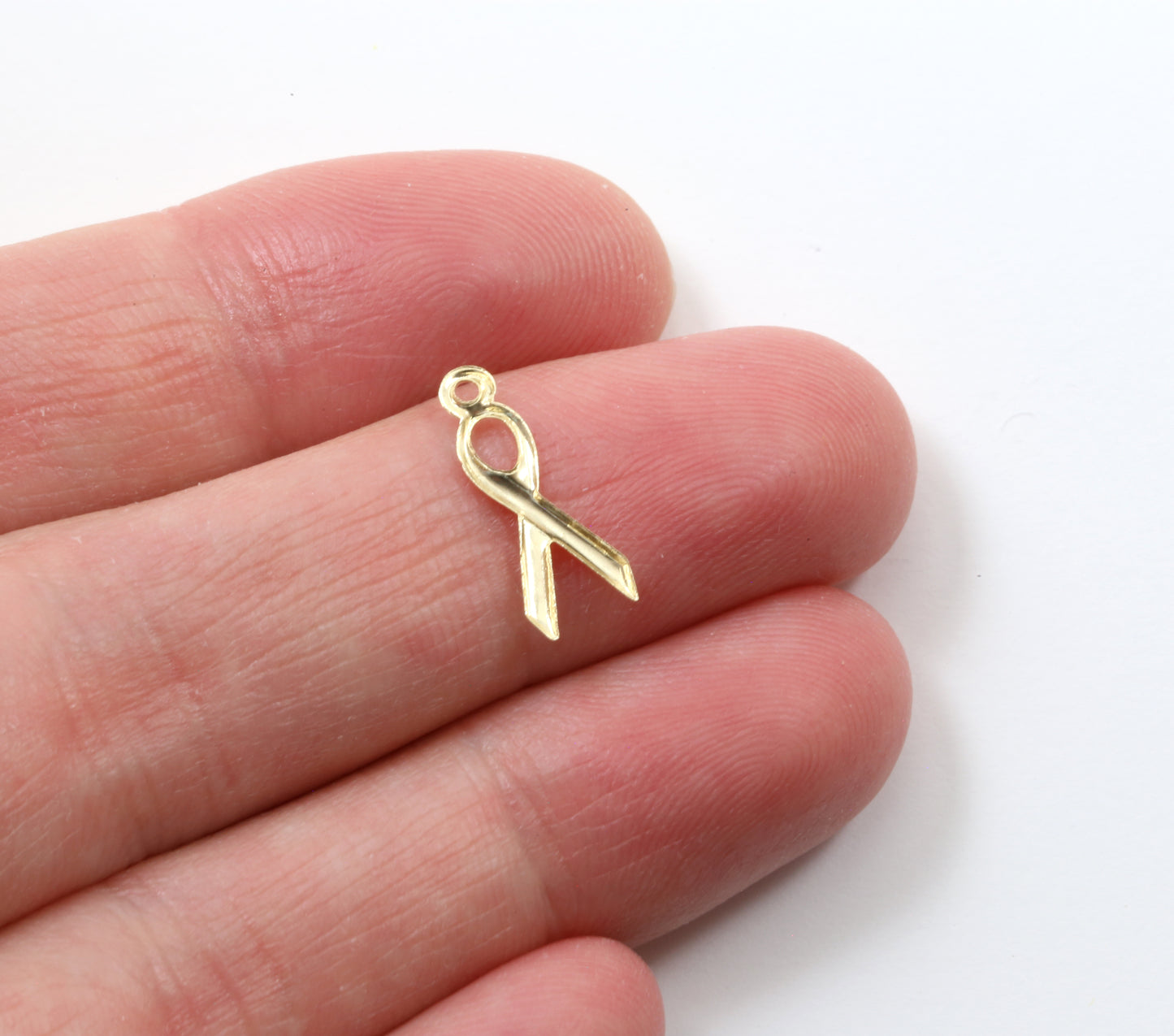 Gold Filled Cancer Awareness Ribbon Charm 15mm x 5mm