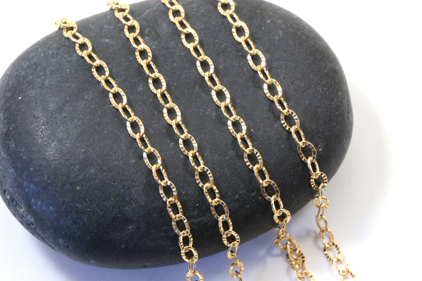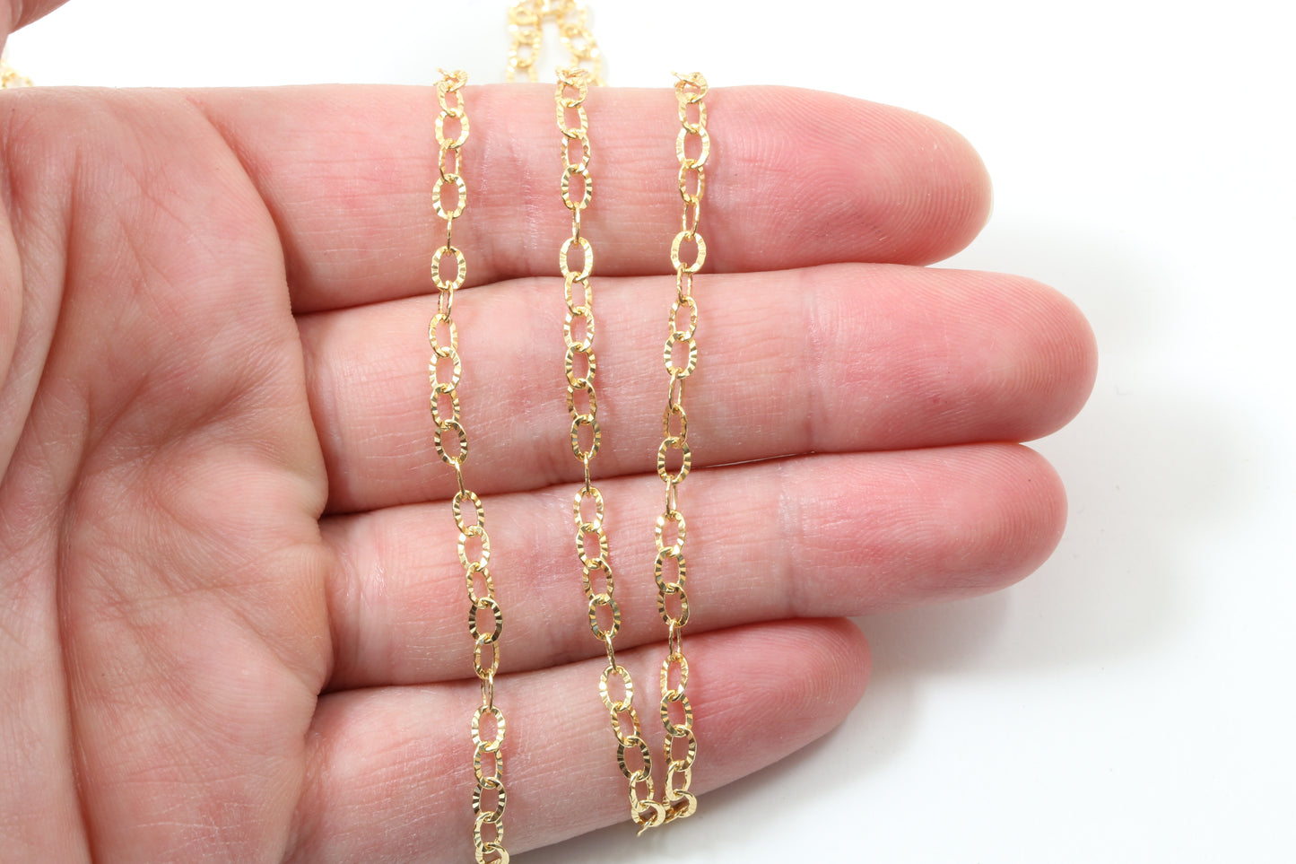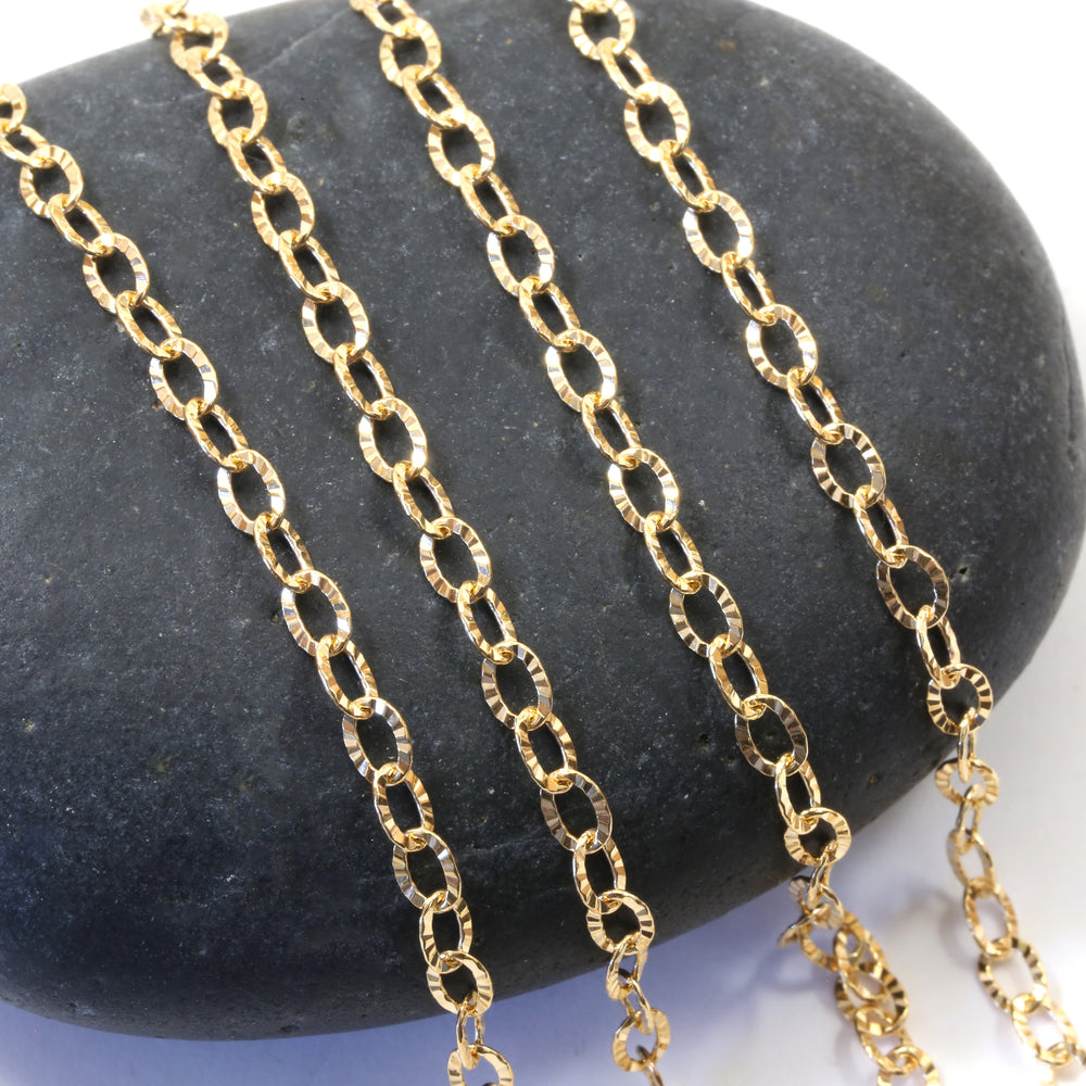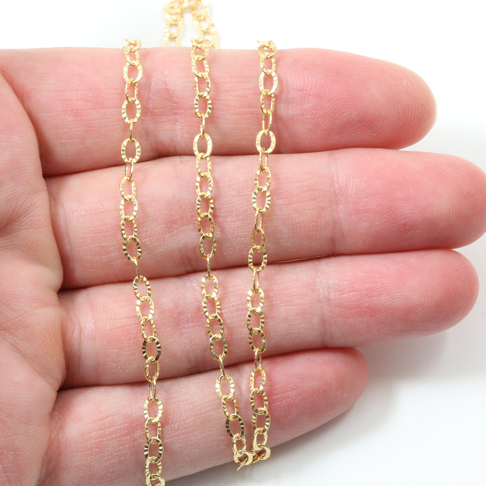 Gold Filled Textured Hammered Oval Cable Chain 3mm x 4mm