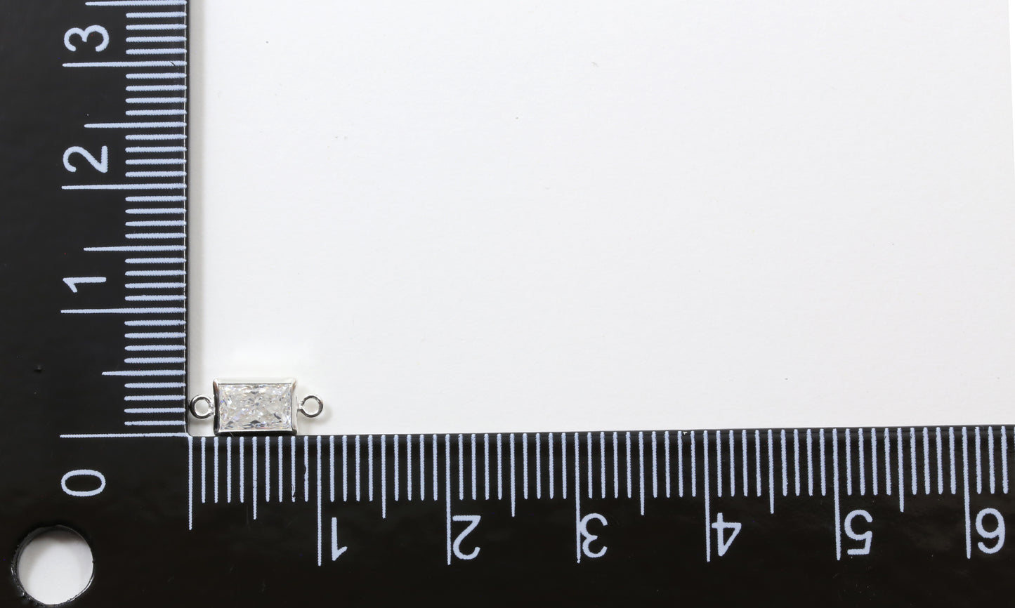 Sterling Silver Rectangle Baguette CZ Bezel Connector Charm 3mm x 5mm