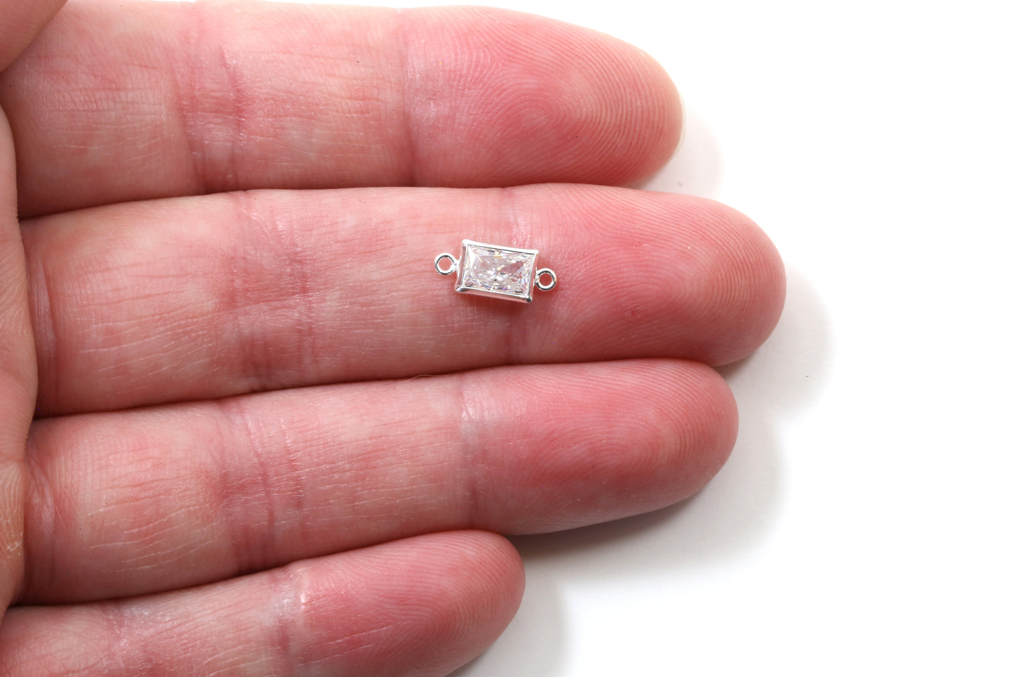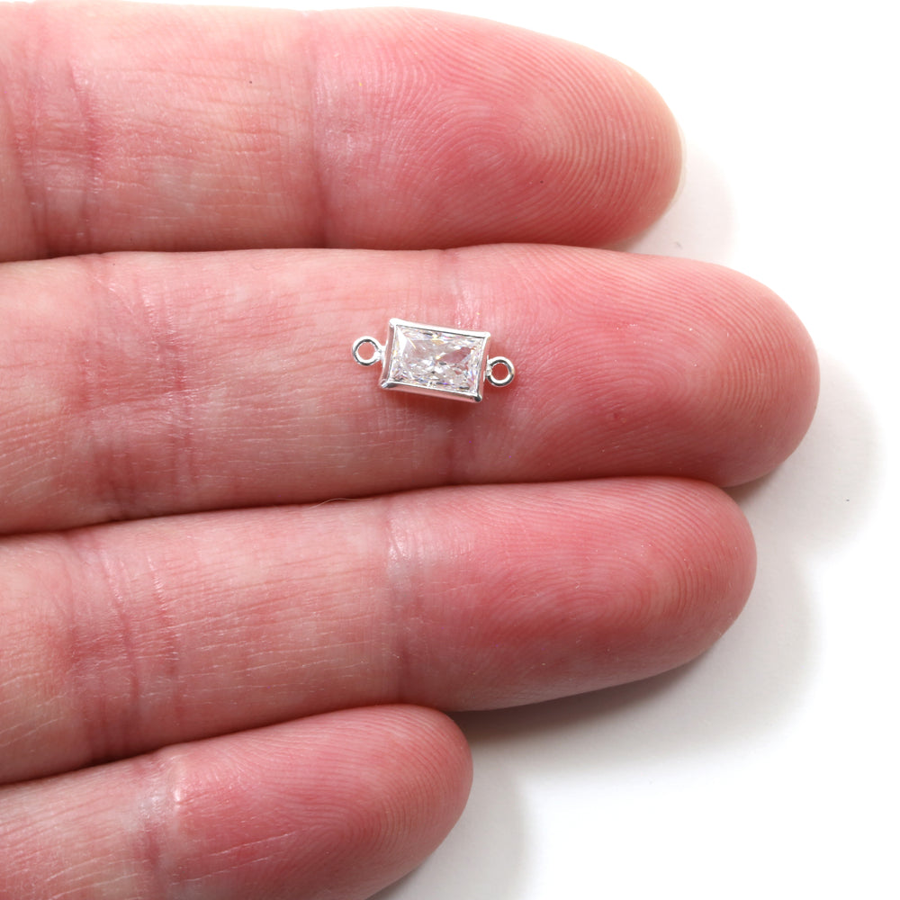 Sterling Silver Rectangle Baguette CZ Bezel Connector Charm 4mm x 6mm