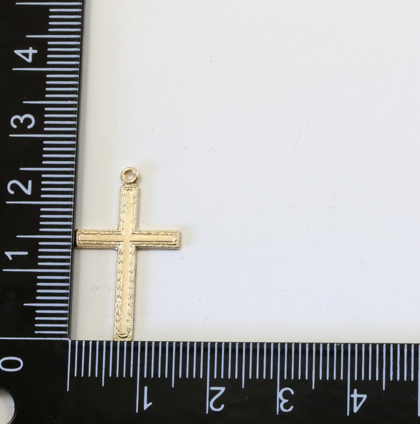 Gold Filled Cross with Etched Sides Charm 15mm x 25mm