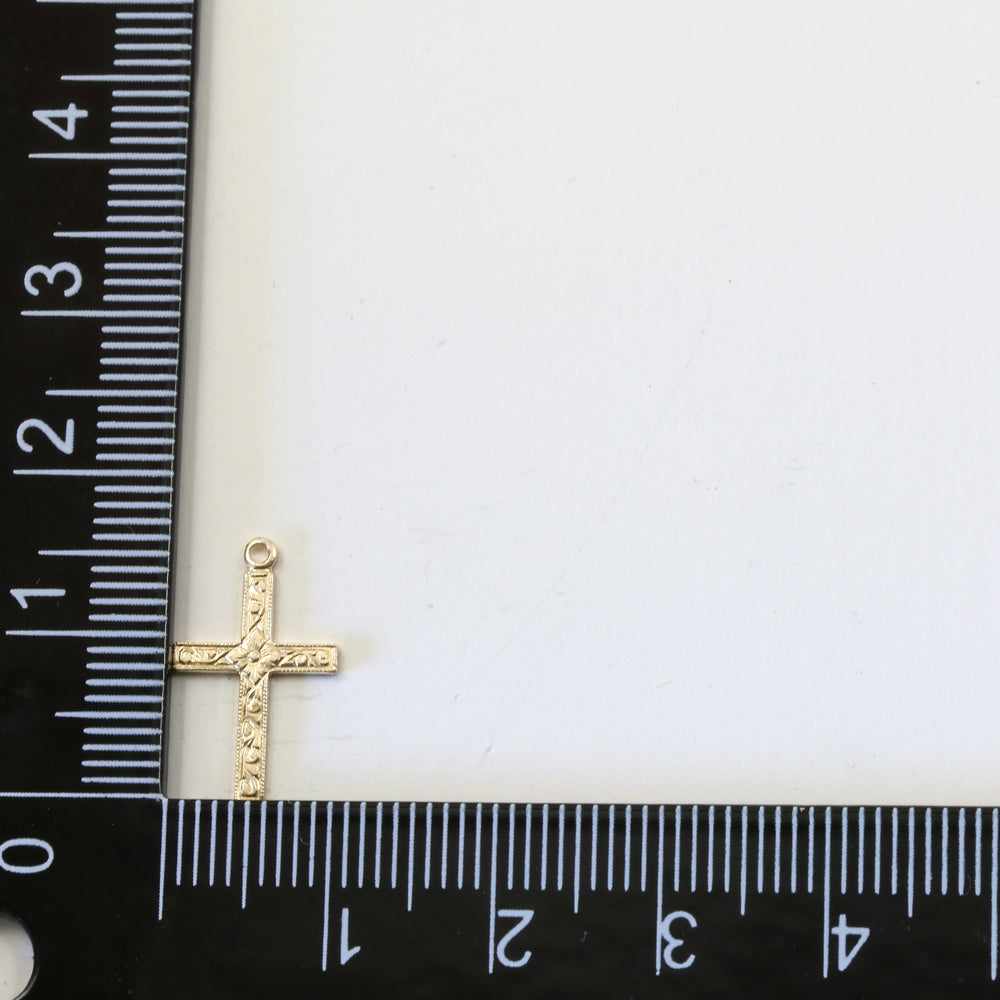 Gold Filled Cross Mini Flower Embossed Charm 10mm x 15mm