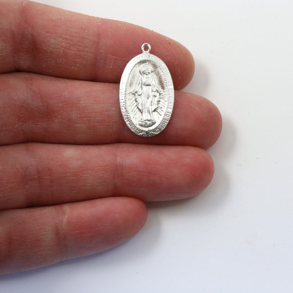 Sterling Silver Large Virgin Mother Mary Oval Charm 22mm x 13mm