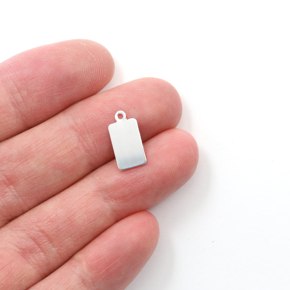 Sterling Silver Rectangle Tag Charm 12mm x 6mm