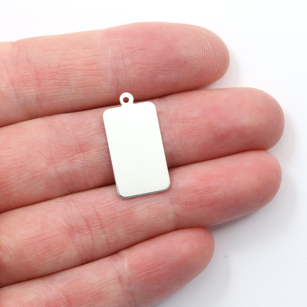 Sterling Silver Rectangle Tag Charm 18mm x 10mm