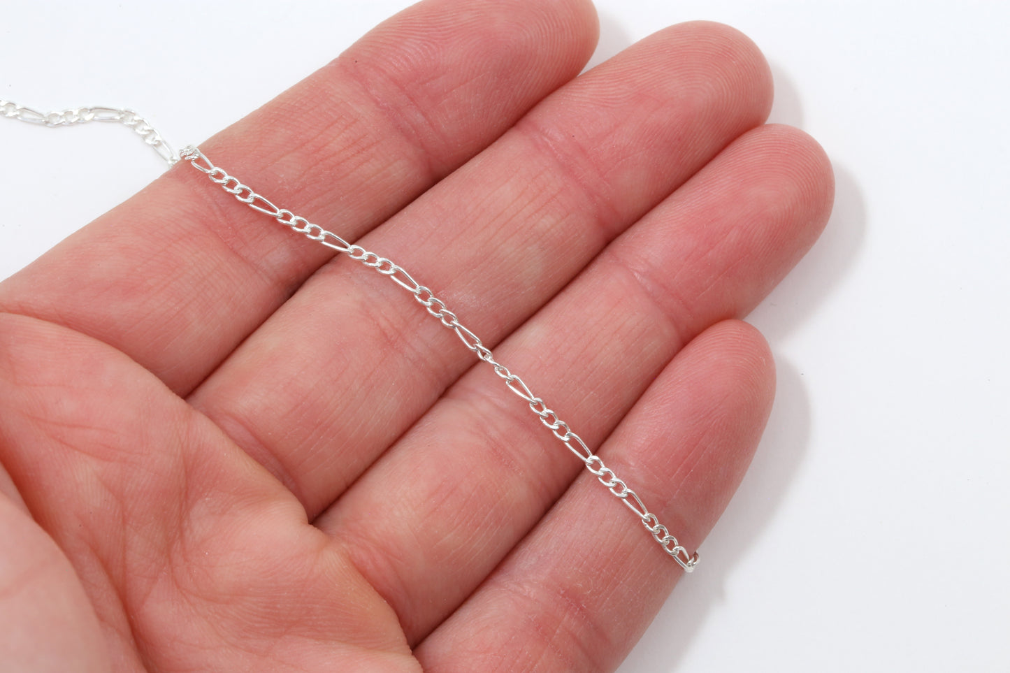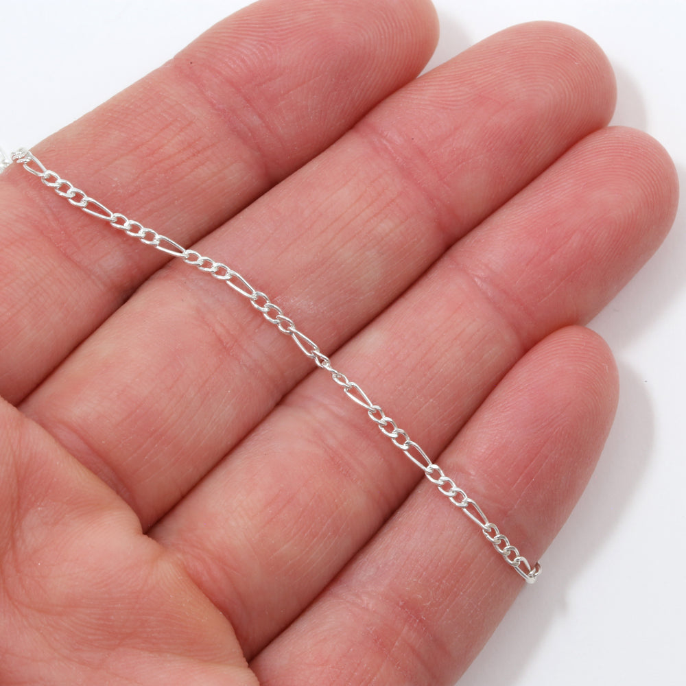 Sterling Silver Flat Figaro Chain 1.4mm x 3.82mm (Per Foot)