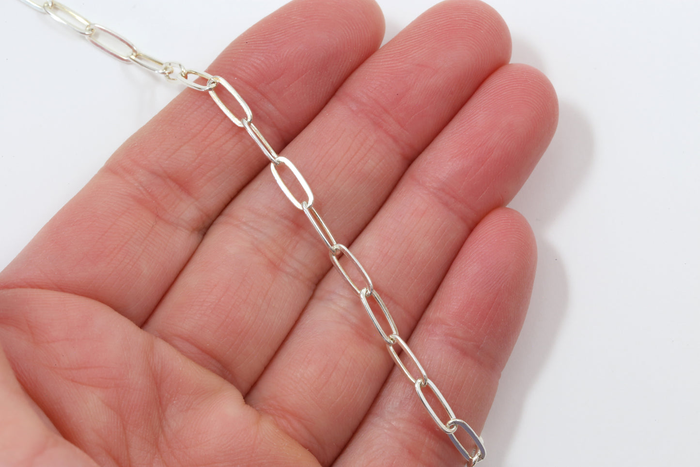 Sterling Silver Large Paperclip Rectangle Chain 3mm x 9mm (Per Foot)